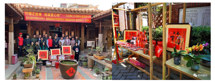 福建省集英項(xiàng)目管理有限公司張小暉董事、福建省泉州市第一建設(shè)有限公司黃文達(dá)副總經(jīng)理作為代表,向靜土文創(chuàng)院捐贈(zèng)年貨。