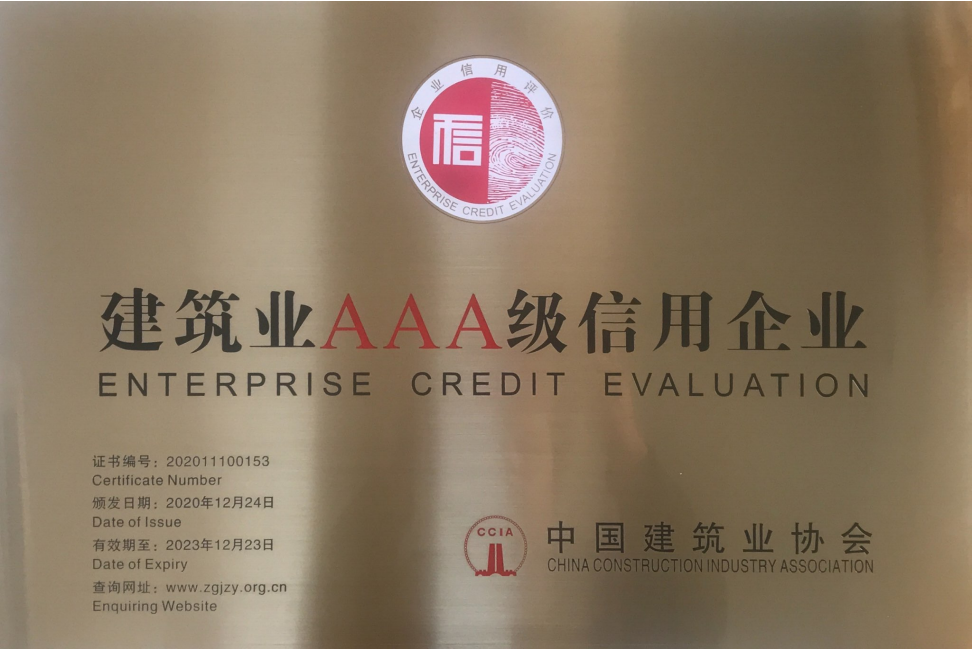 福建省泉州市第一建設(shè)有限公司榮獲2020年度全國建筑業(yè)AAA級信用企業(yè)稱號